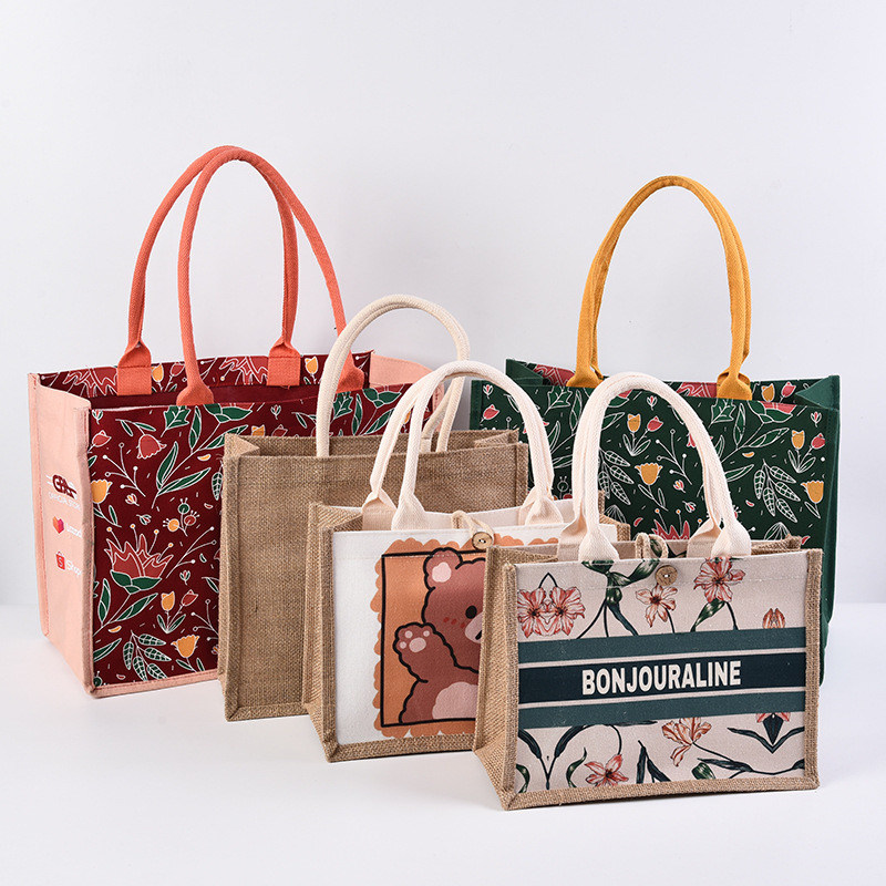Jute Tote Bag Burlap Bags laminated with interior Resuable Shopping Bags
