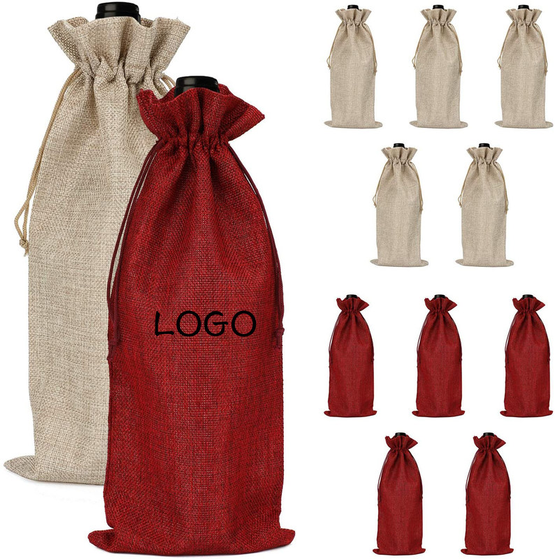 Printed Burlap Jute Wine Bags Drawstring Resuable Gift Wine Bags